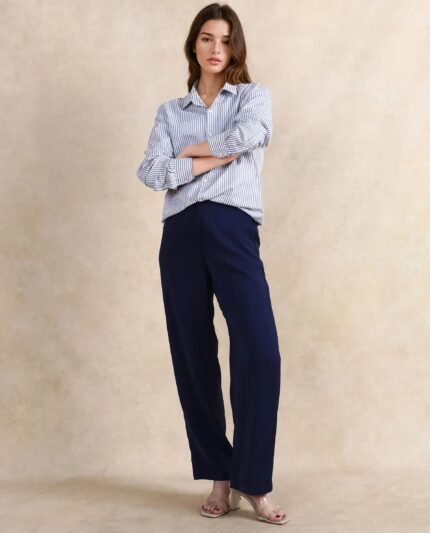 Rareism Women Skrein Navy Straight Fit Plain Trouser
