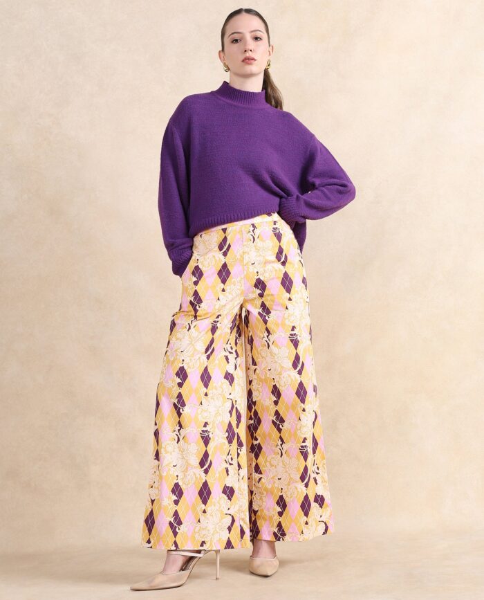 Be the first to review “Rareism Women Bari Light Multi Cotton Fabric Zipper Closure Wide Fit Ankle Length Geometric Print Trouser” Cancel reply