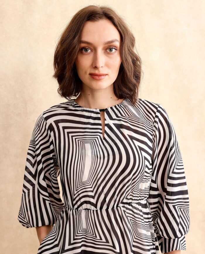 3. The abstract print adds a bold statement to the design, making it a standout piece.