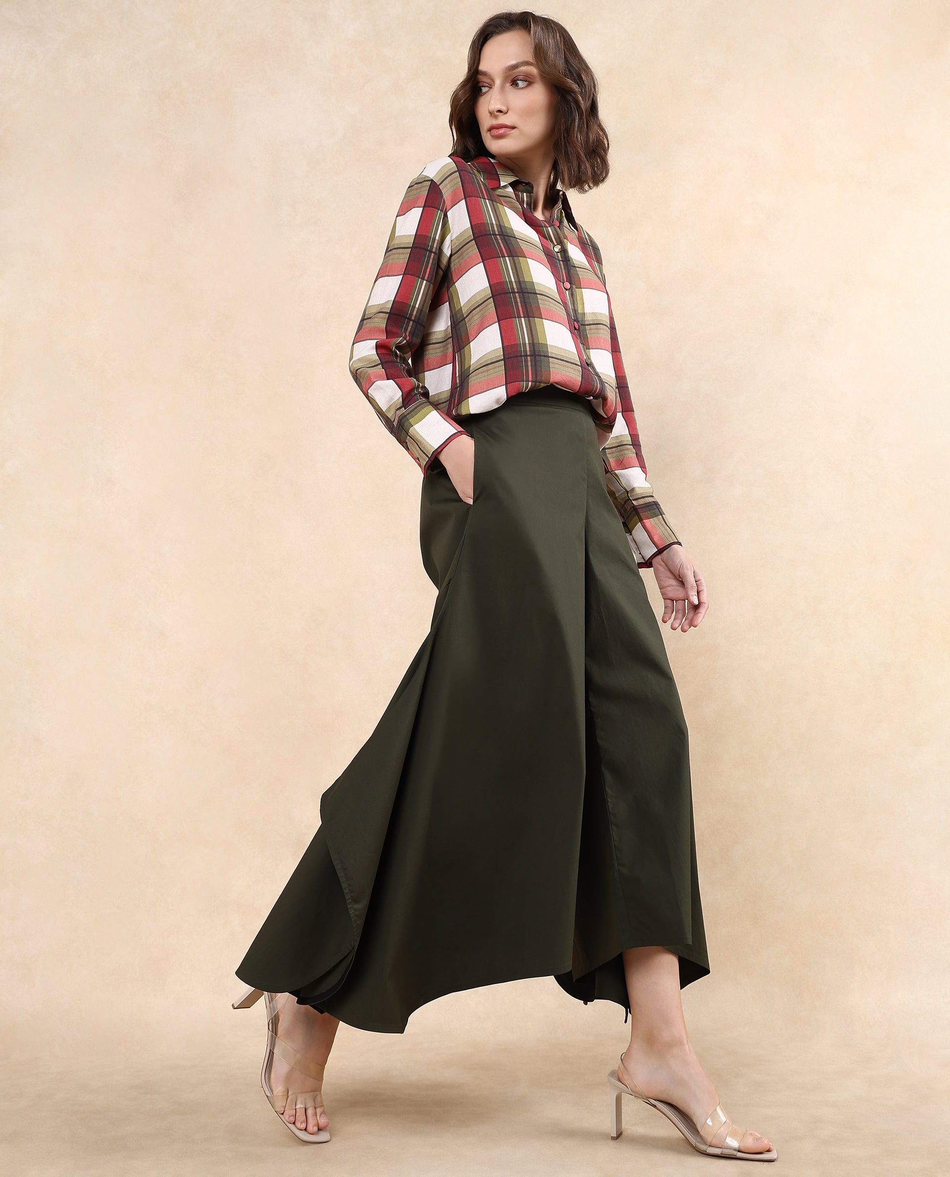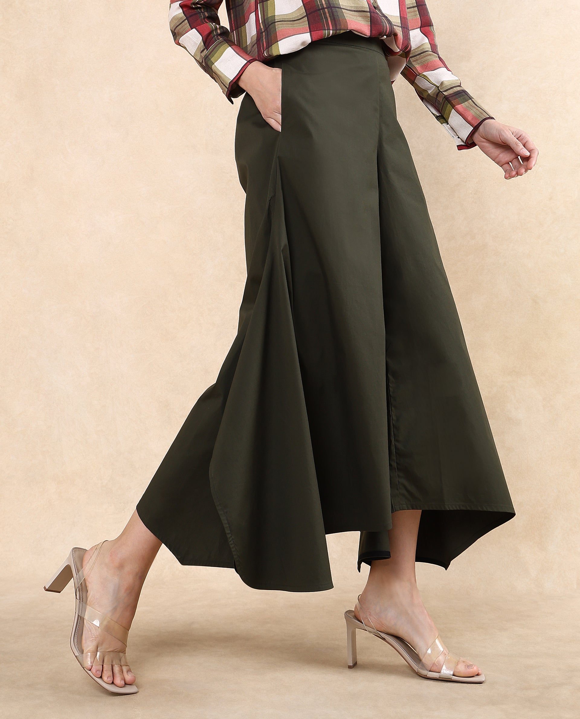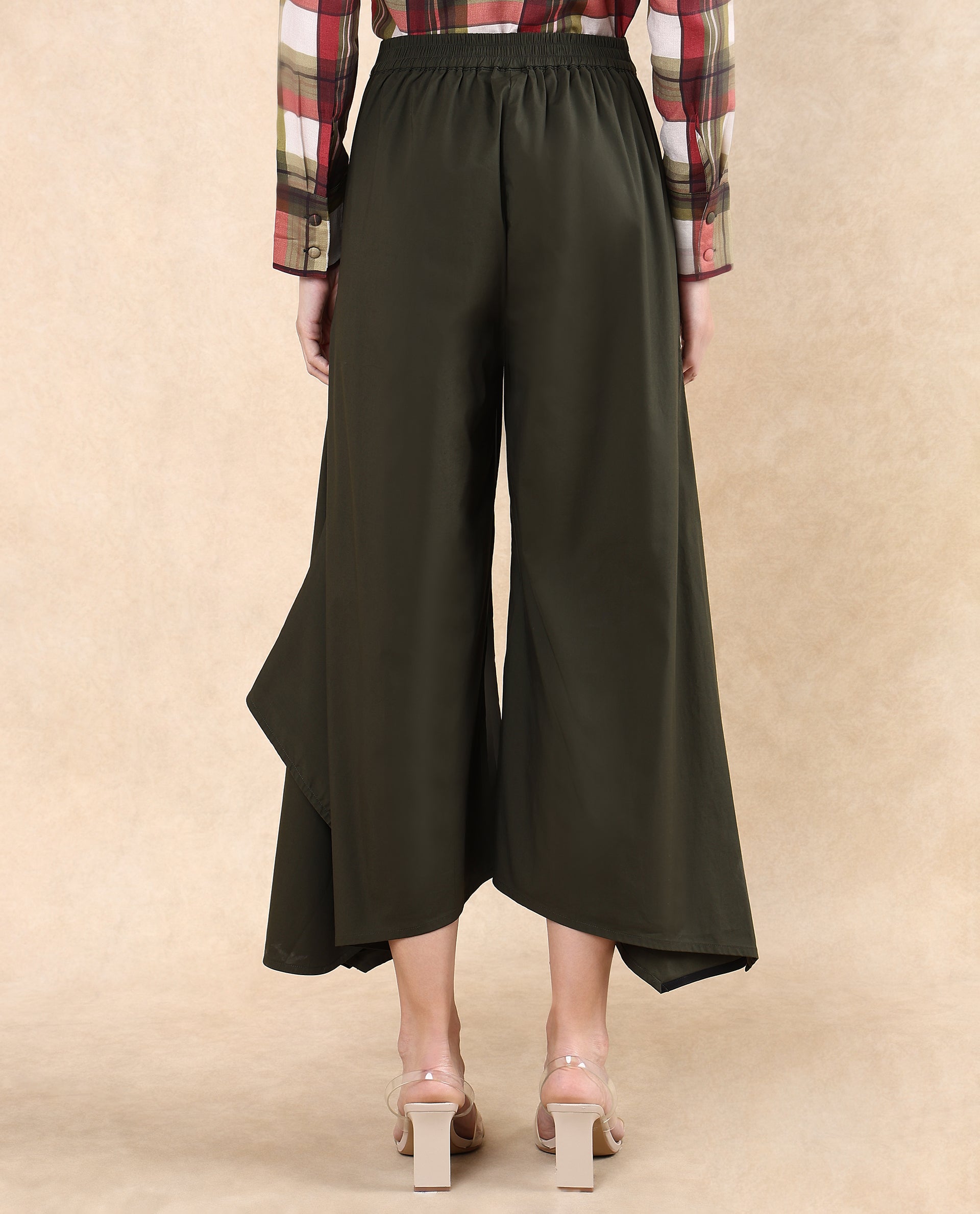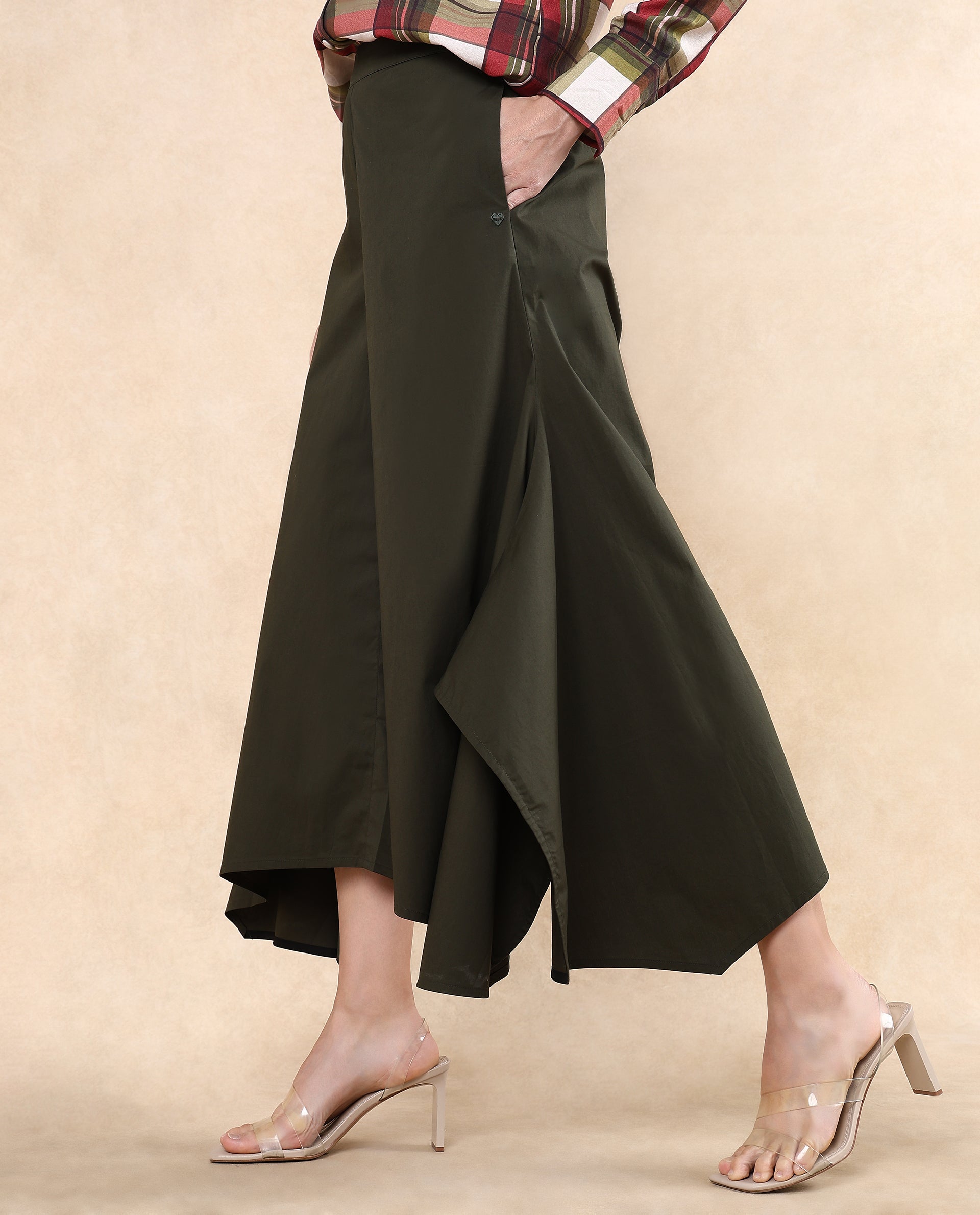 Rareism Women Filom Green Cotton Blend Fabric Flared Ankle Length Plain Trouser