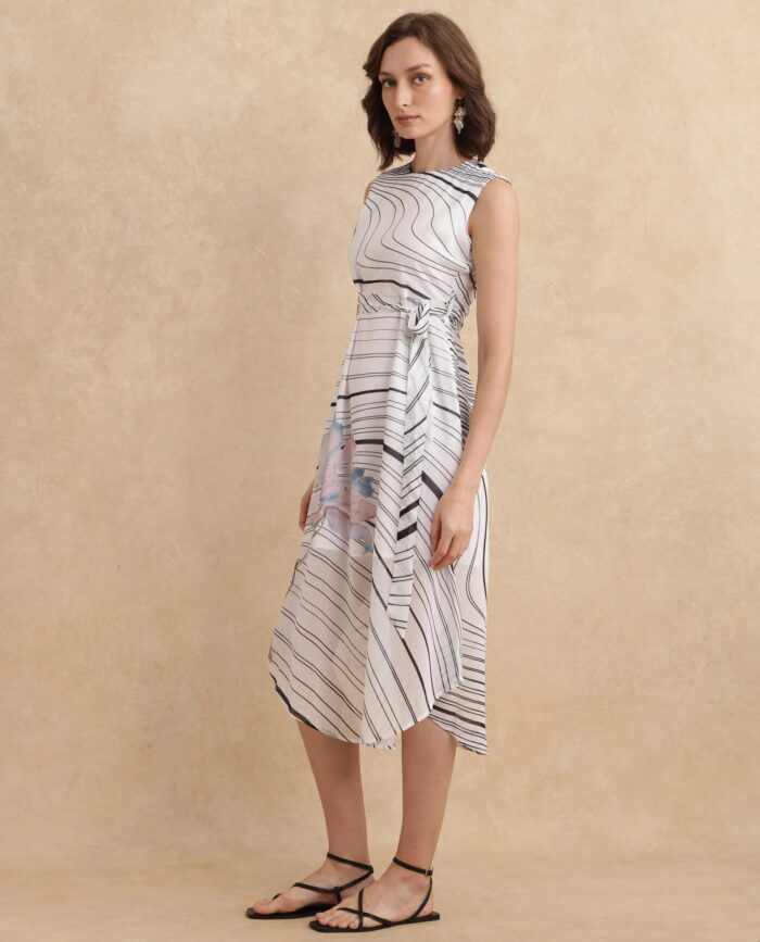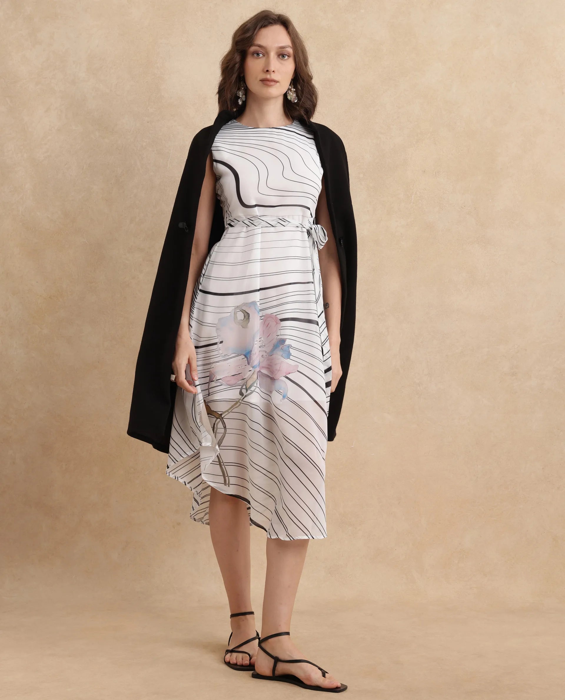 Rareism Women Kibed Multi Sleeveless Round Neck Fit And Flare Midi Floral Print Dress