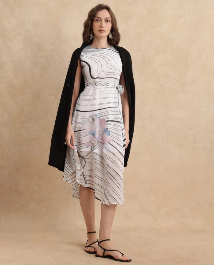 2. Round Neck: A timeless and flattering neckline that pairs beautifully with the dress’s fit.