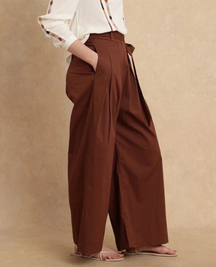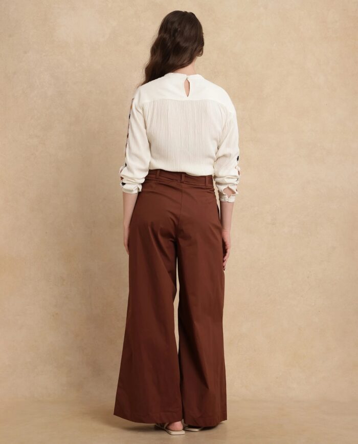 Rareism Women Sebern Brown Cotton Blend Fabric Button Closure Flared Ankle Length Plain Trouser