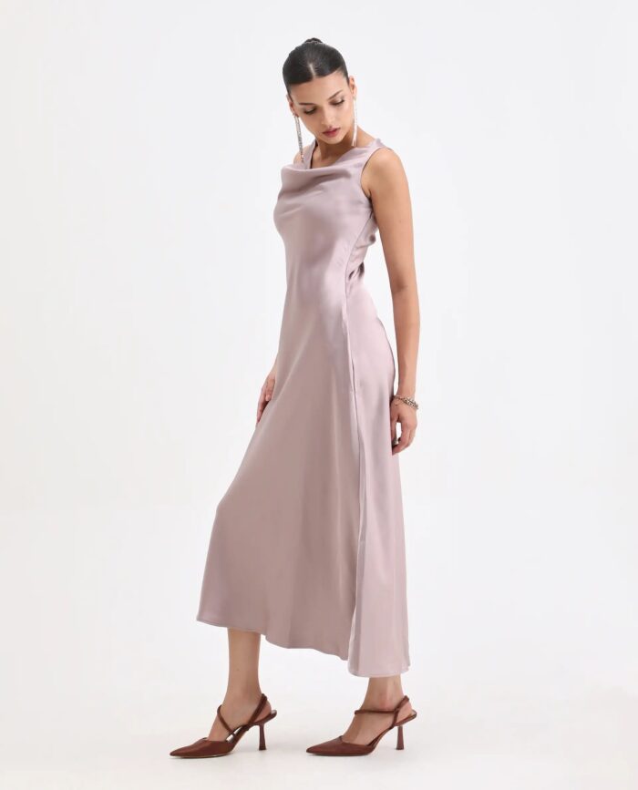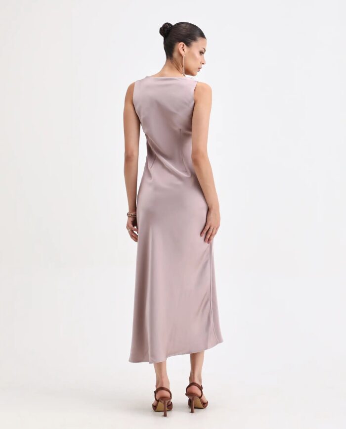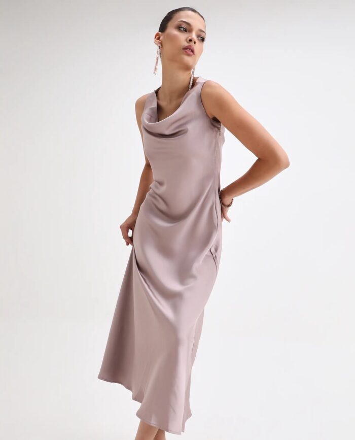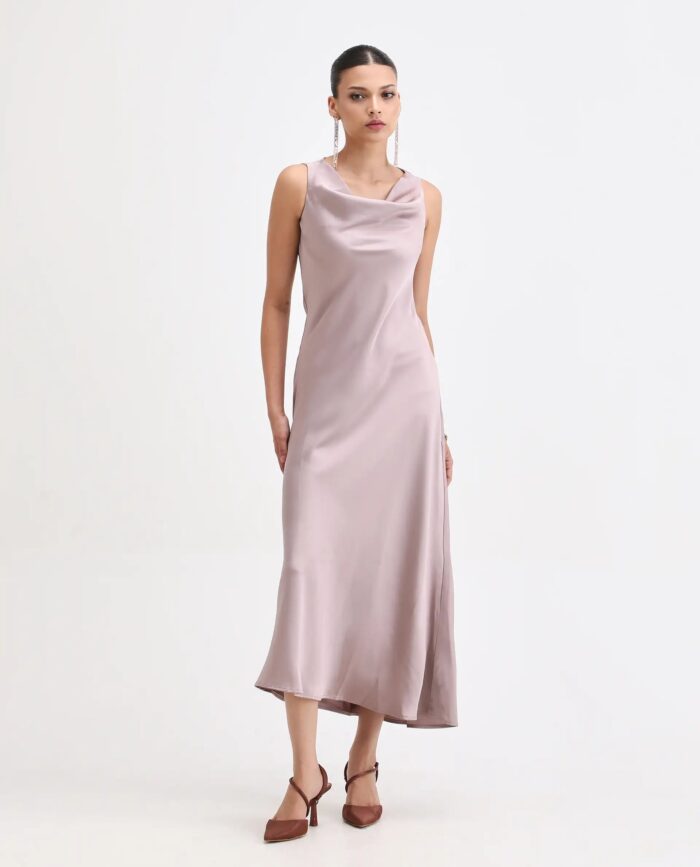 Be the first to review “Rareism Women Zarina Dusky Beige Sleeveless Cowl Neck Zipper Closure Bodycon Maxi Plain Dress”