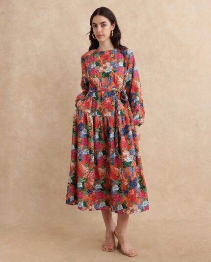 Be the first to review “Rareism Women’s Eritram Multi Viscose Fabric Crew Neck Puff Sleeve Abstract A-Line Maxi Dress” Cancel reply