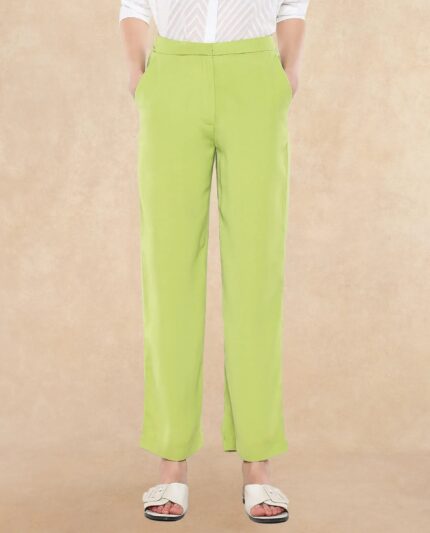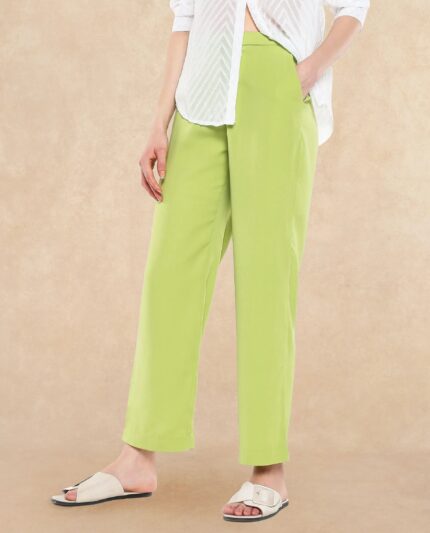 Rareism Women Leezo Black Tie Up Closure Straight Fit Ankle Length Plain Trouser